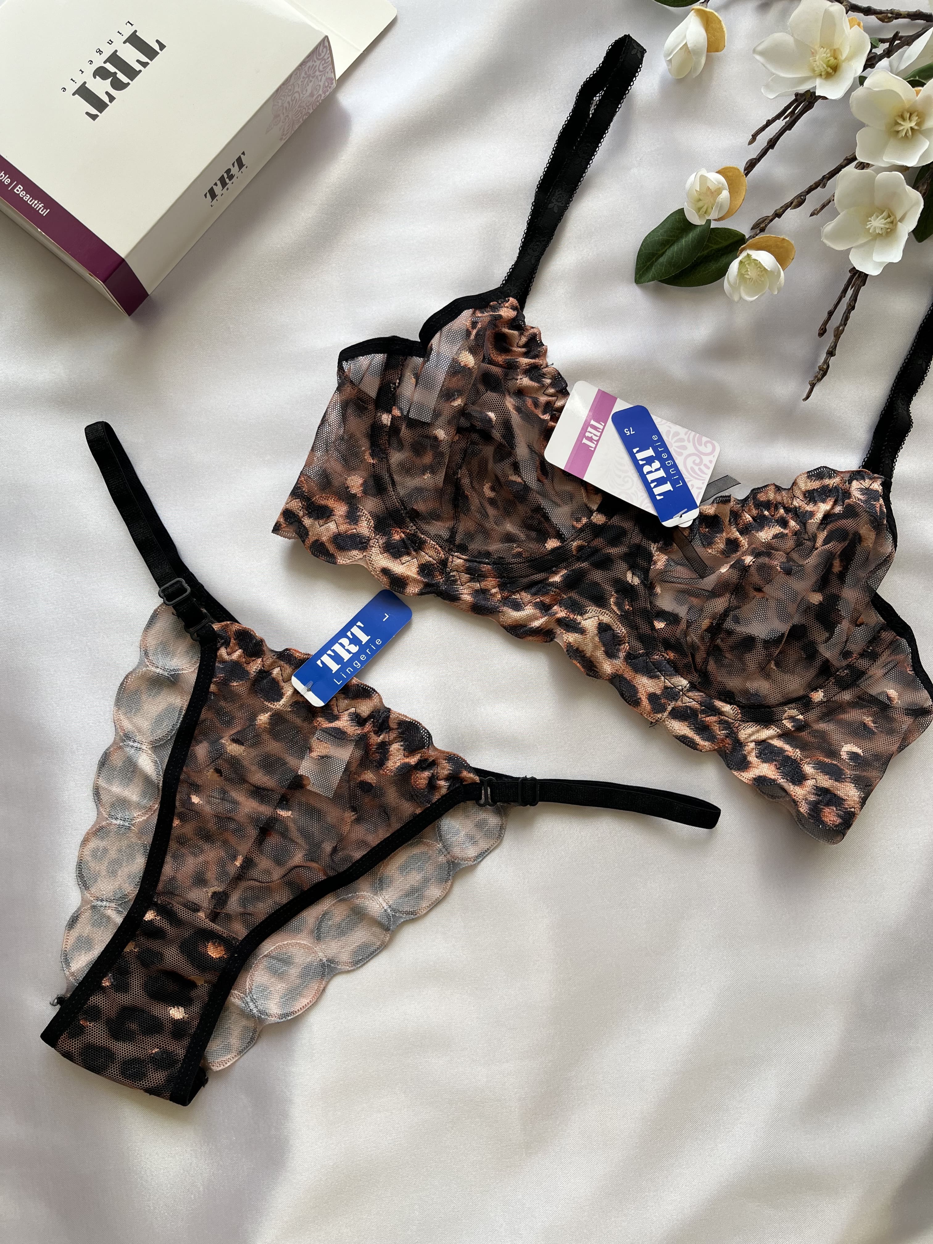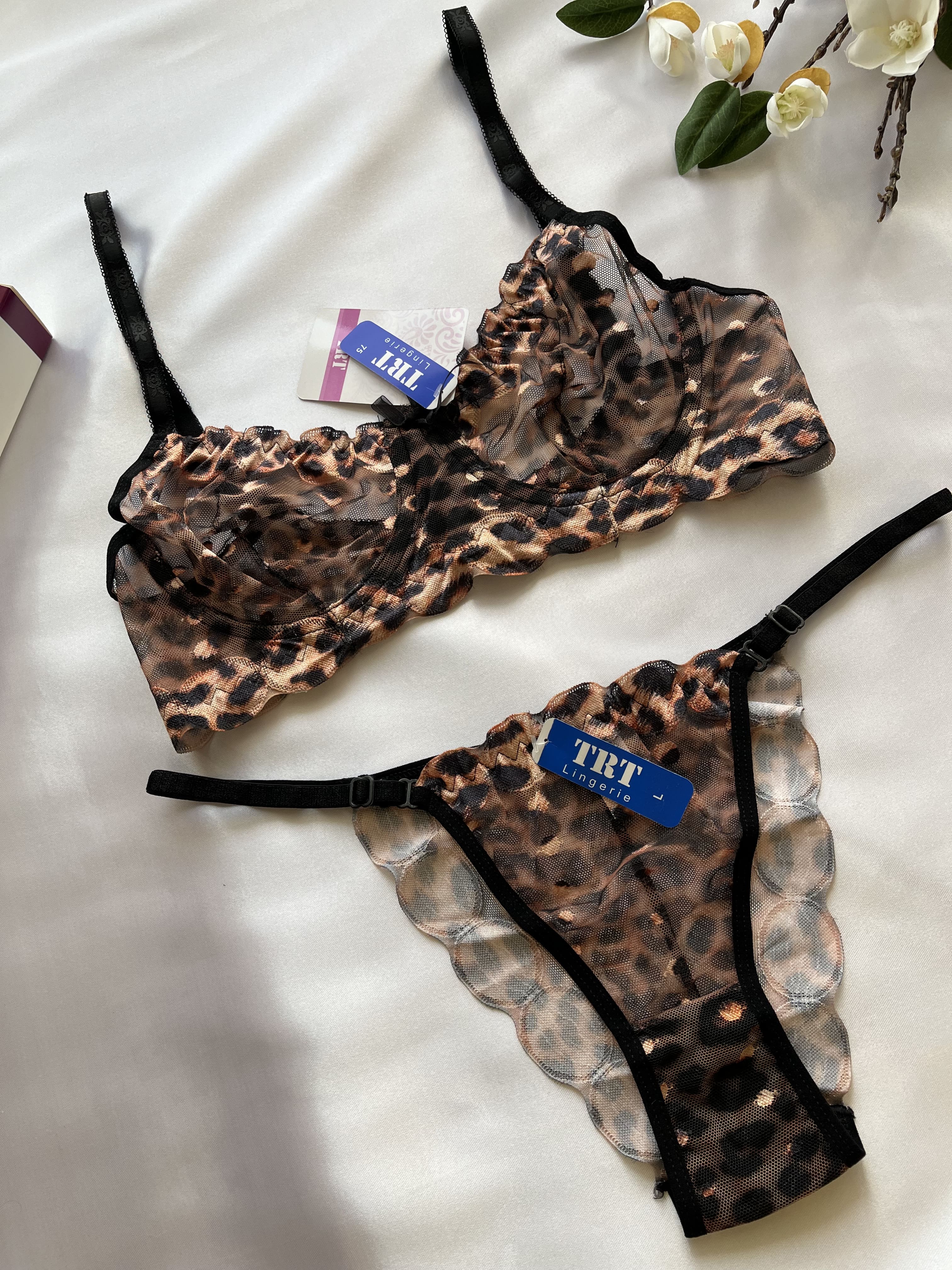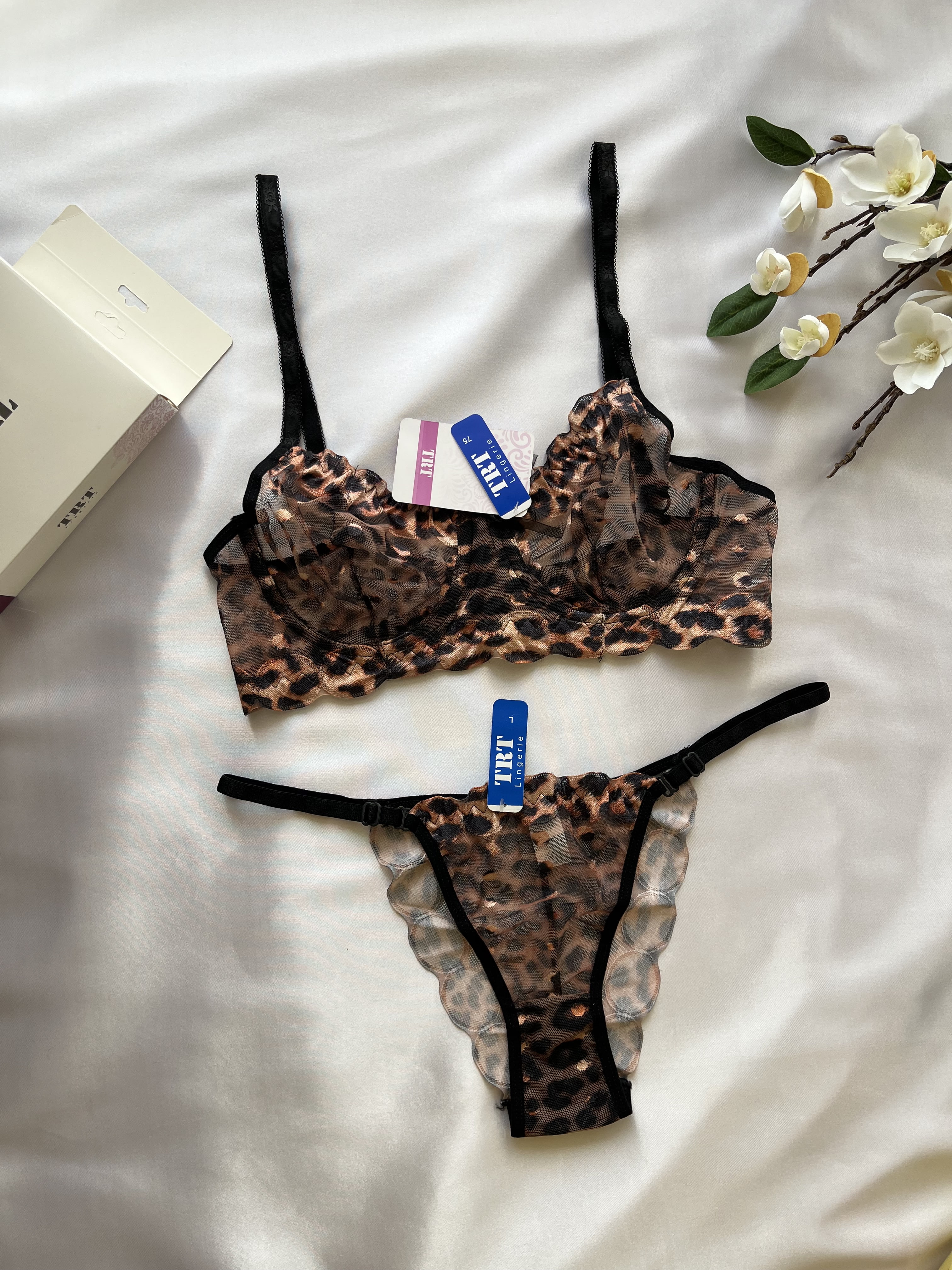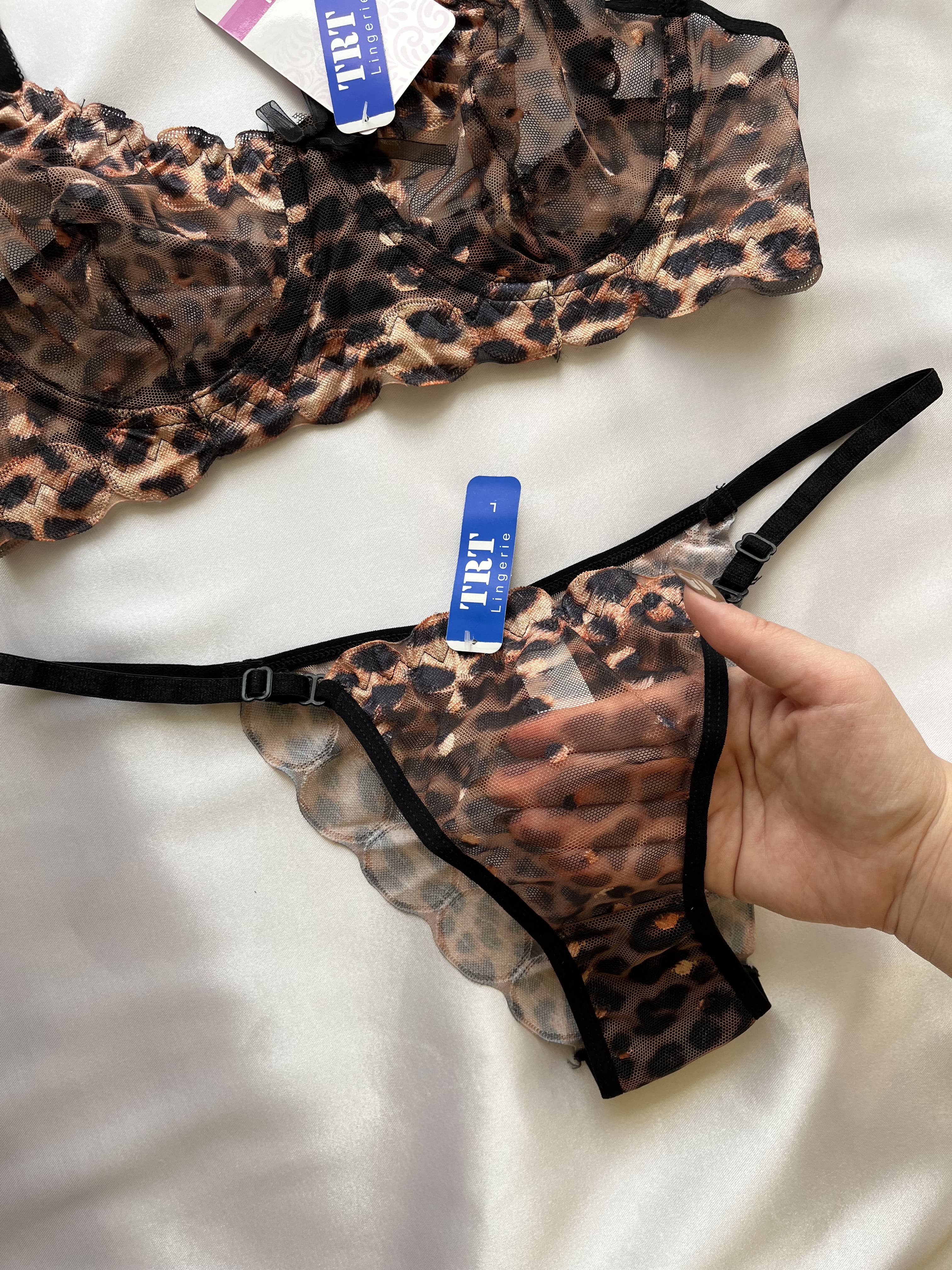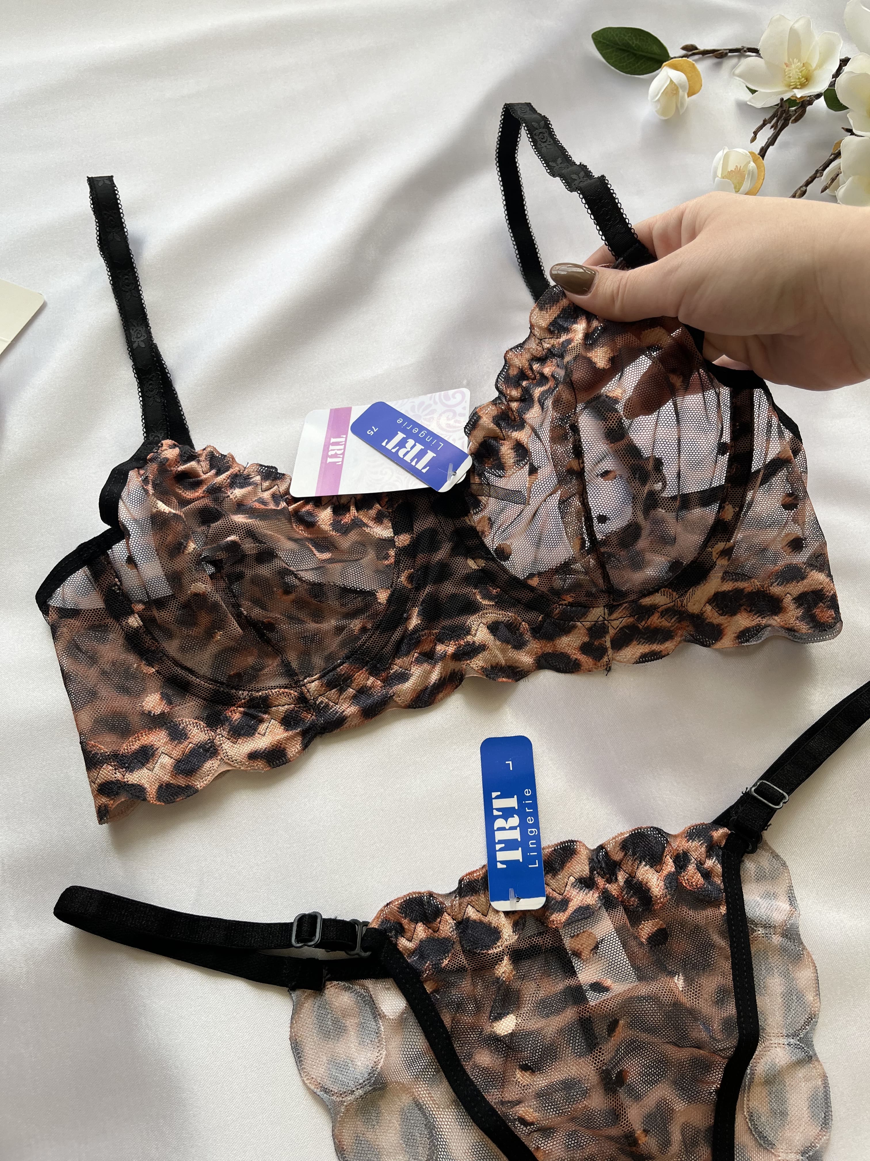 ست شورت و سوتین توری فنردار زنانه طرح پلنگی ست توری فنردار پلنگی تور نرم و لطیف و ظریف ایستایی عالی تنخور جذاب سایزبندی:75,80,85,90
