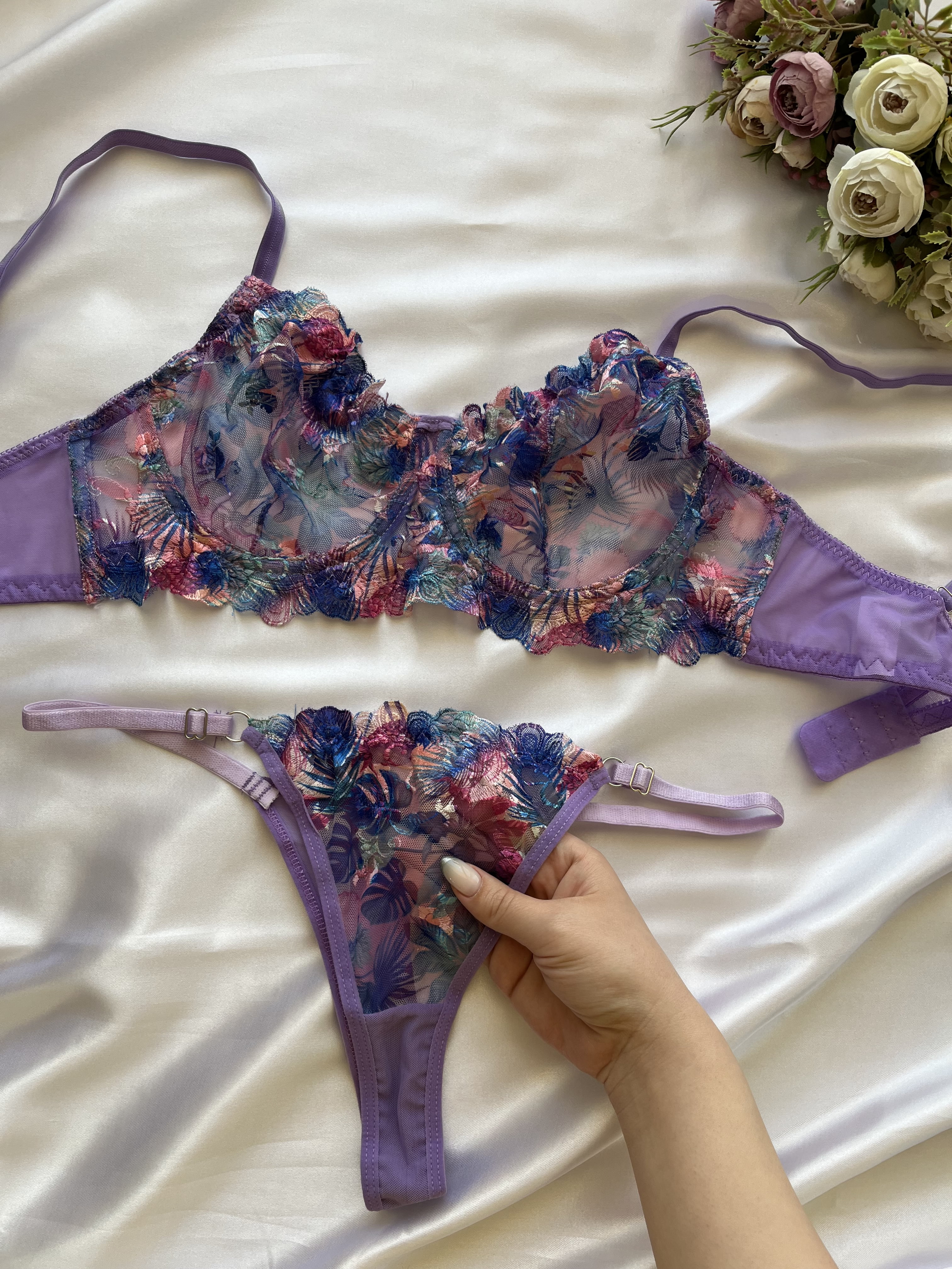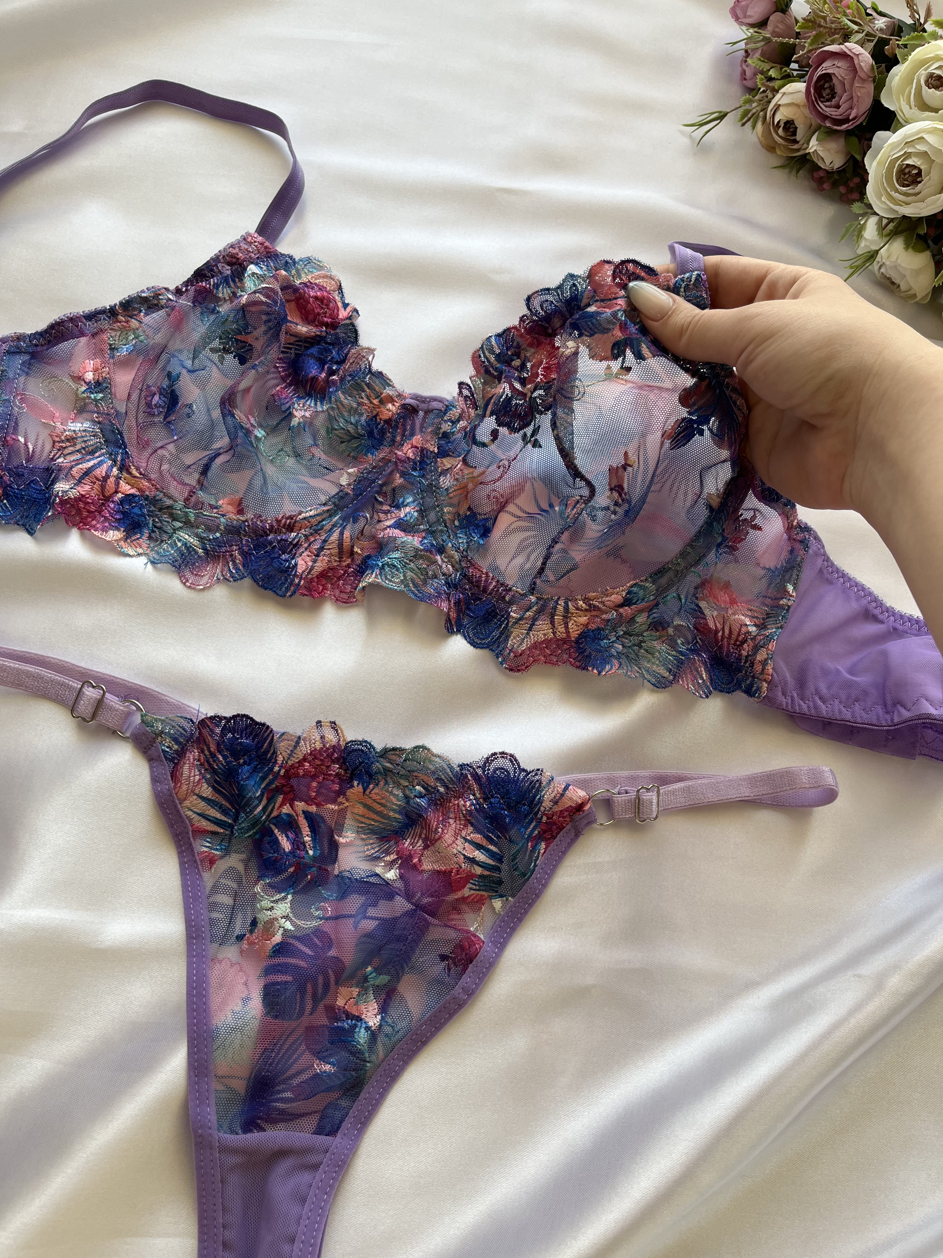ست شورت و سوتین زنانه توری فنردار بنفش